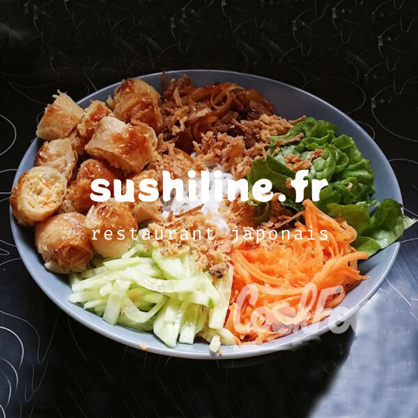 vermicelle, crevette, nems vegeteriens, légumes